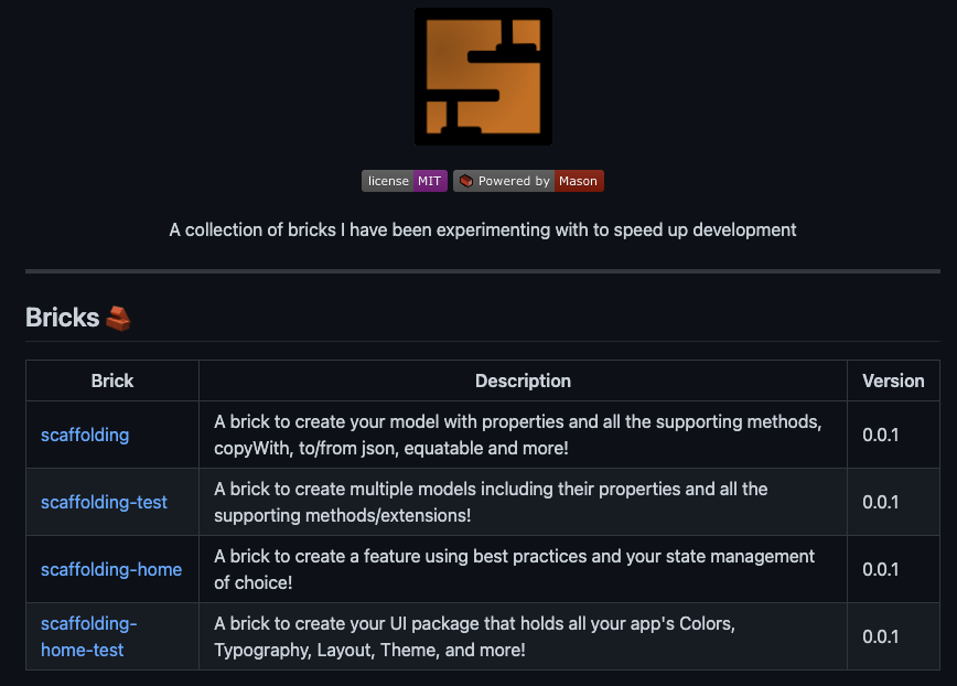 I now have 4 mason bricks and my first pub.dev dart/flutter package and a tonne of documentation to hopefully keep this moving and encourage other to contribute or learn from this work.